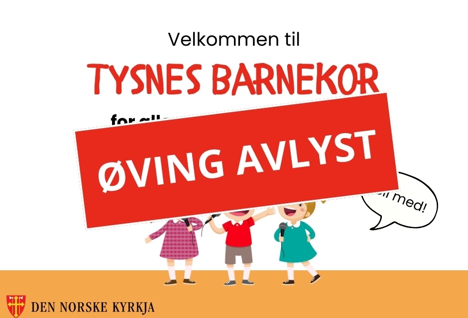 Då me ikkje greier å få det forsvarleg varmt i Kyrkjeståvo i denne kulda, vert diverre dagens barnekorøving avlyst.